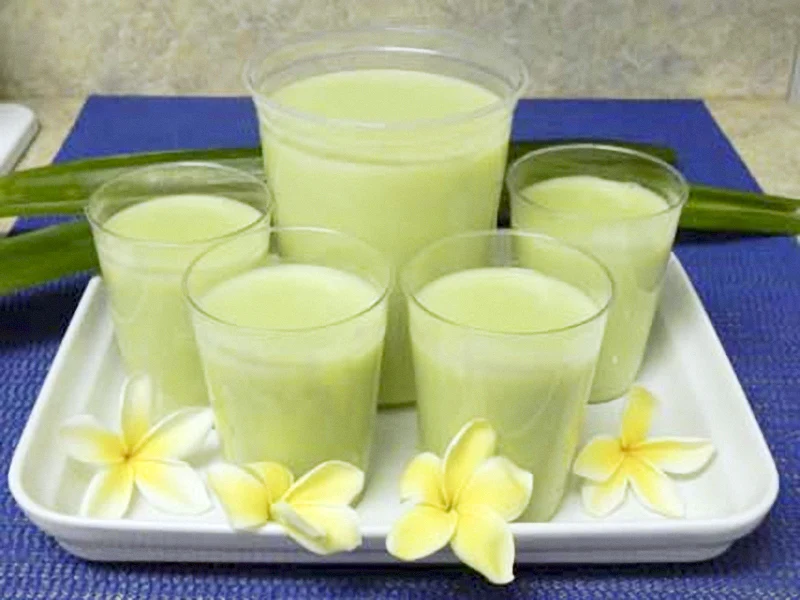 – Lá dứa rửa sạch và bó lại thành bó, cho vào nước đun sôi rồi vớt lá ra, dùng nước đó xay sữa.