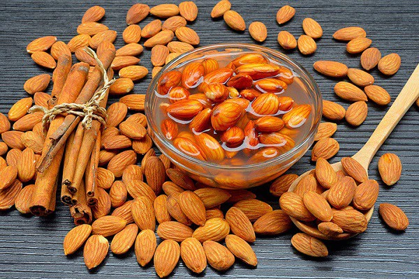 + Ngâm hạnh nhân vào 1 bát nước, để qua đêm hoặc ít nhất 8 giờ
