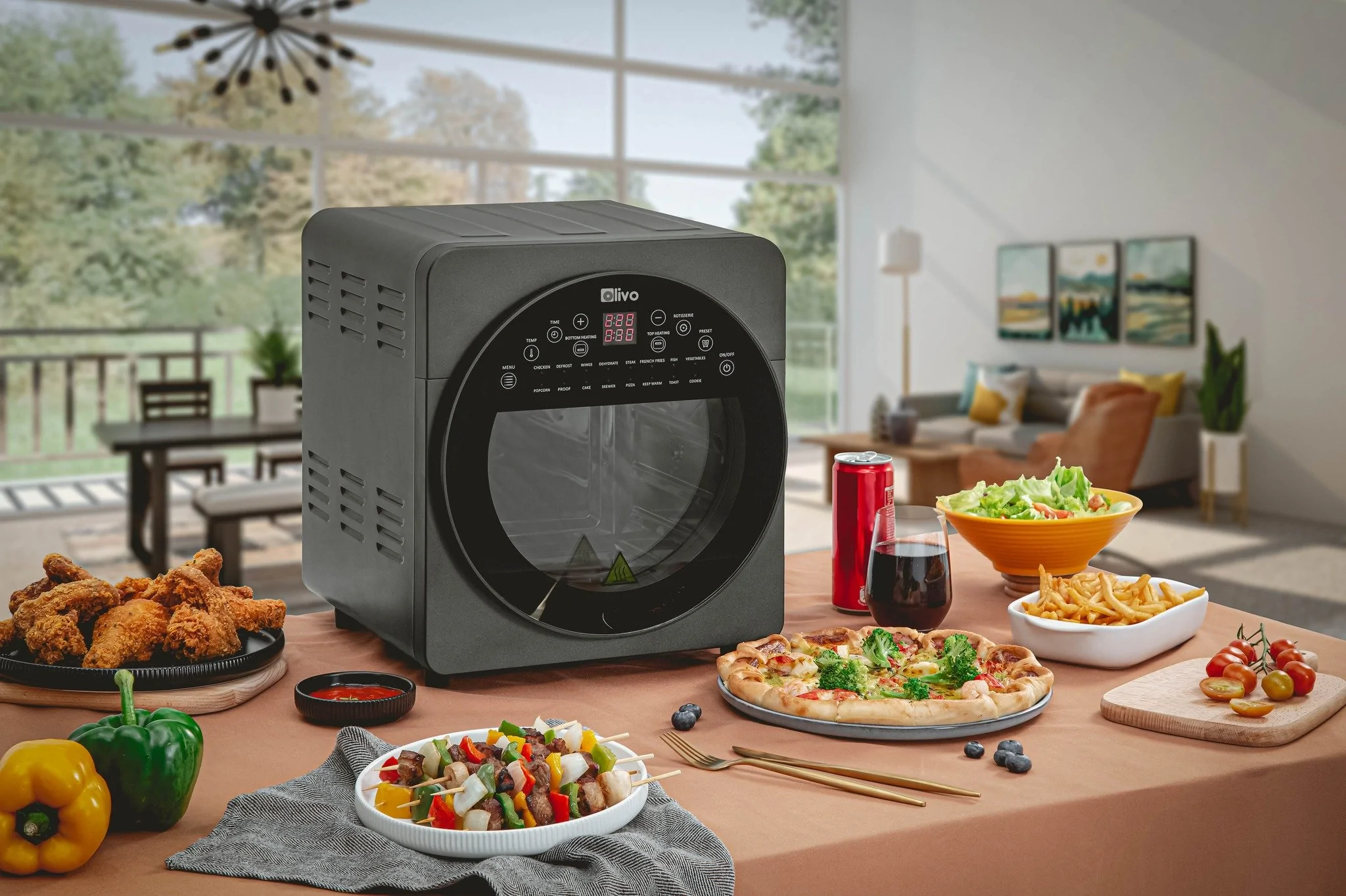 Một thiết bị nhà bếp quá nổi tiếng và quen thuộc với hội chị em nội trợ chính là nồi chiên không dầu. Tại Olivo, nồi chiên không dầu Olivo AF12 và Olivo AF15 đang làm mưa làm gió trên thị trường. Nồi chiên không dầu Olivo thay thế tới 9 loại thiết bị nhà bếp khác nhau: nồi chiên không dầu, một lò nướng, một máy sấy hoa quả, một lò nướng bánh pizza và lò nướng bánh mì, máy làm bỏng, máy ủ sửa, máy sấy hoa quả, lò vi sóng… Dung tích nồi lớn, AF12 với dung tích 12 lít và AF15 dung tích 15 lít. Với dung tích lớn như này bạn có thể làm bữa ăn cho gia đình từ 4 – 6 người, cho phép bạn quay gà, vịt nguyên con hay chế biến nhiều loại thực phẩm cùng một lúc.