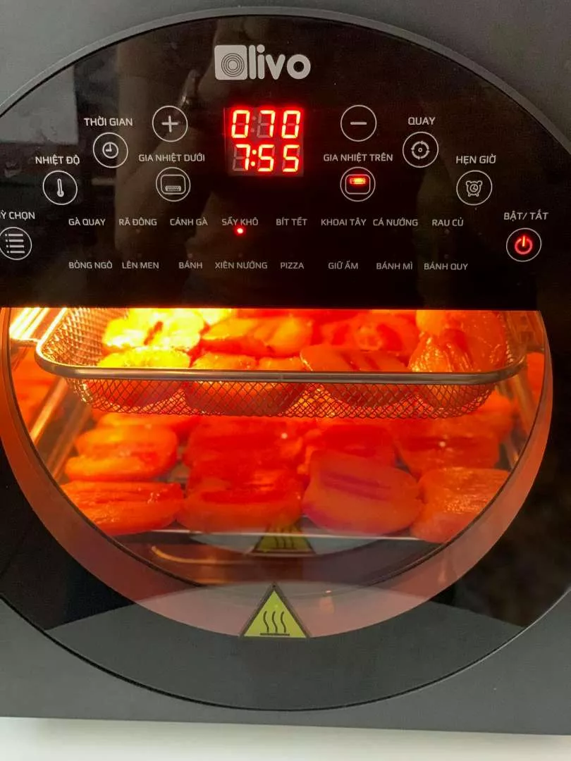 • Giúp đồ ăn chín đều không cần lật dở. Cùng với thiết kế có thể chế biến cùng lúc 3 món ăn với 3 tầng nướng riêng biệt. Đây là một trong những tính năng vượt trội của OLIVO AF15 so với các nồi chiên không dầu bình thường, nỗi lo thức ăn không chín đều, chỗ thì sống, chỗ thì cháy đã được giải quyết. Giúp cho người sử dụng OLIVO AF15 không cần phải mở nồi để đảo mặt thực phẩm vừa giúp an toàn tuyệt đối cũng như tiết kiệm thời gian công sức khi nấu nướng.