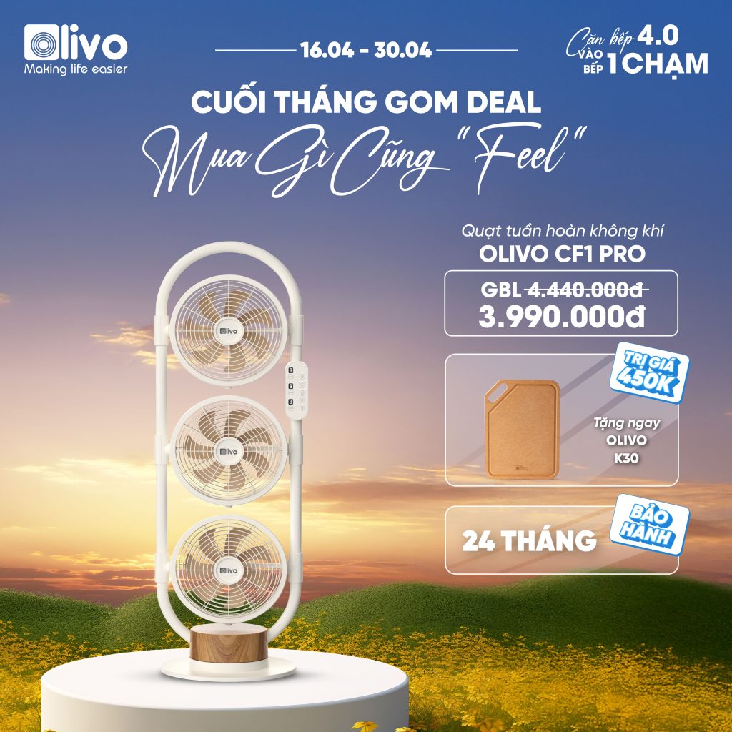 Quạt là sản phẩm không thể thiếu trong mùa hè cho mọi gia đình. Quạt tuần hoàn không khí OLIVO CF1 PRO là sản phẩm quạt thế hệ mới nhất với thiết kế độc đáo 3 lồng quạt trên một thiết bị. Khả năng làm mát nhanh chóng trong không gian rộng lớn, có thể điều chỉnh linh hoạt hướng gió giúp tỏa đều cả căn nhà. Tích hợp thêm ngăn chứa tinh dầu giúp không khí dễ chịu, thơm mát và hỗ trợ chống muỗi hiệu quả. Chúng tôi tin chắc rằng OLIVO CF1 PRO sẽ làm hài lòng cả những khách hàng khó tính nhất và nhanh chóng chiếm lĩnh vị trí số 1 thị trường.