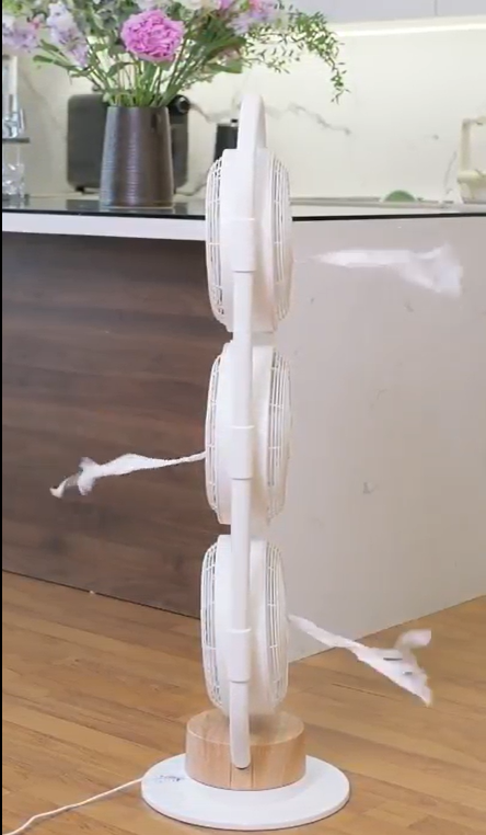 - Điều khiển cảm ứng trung tâm trên thân quạt, có thể điều chỉnh độc lập 3 lồng quạt chạy ở các chế độ khác nhau từ nhẹ đến mạnh. Thêm điều khiển từ xa thông minh tiện lợi sử dụng mà không cần di chuyển khi bạn đang nằm nghỉ trên giường hoặc ngồi xem phim trên sopha vẫn có thể điều chỉnh được quạt theo ý.
