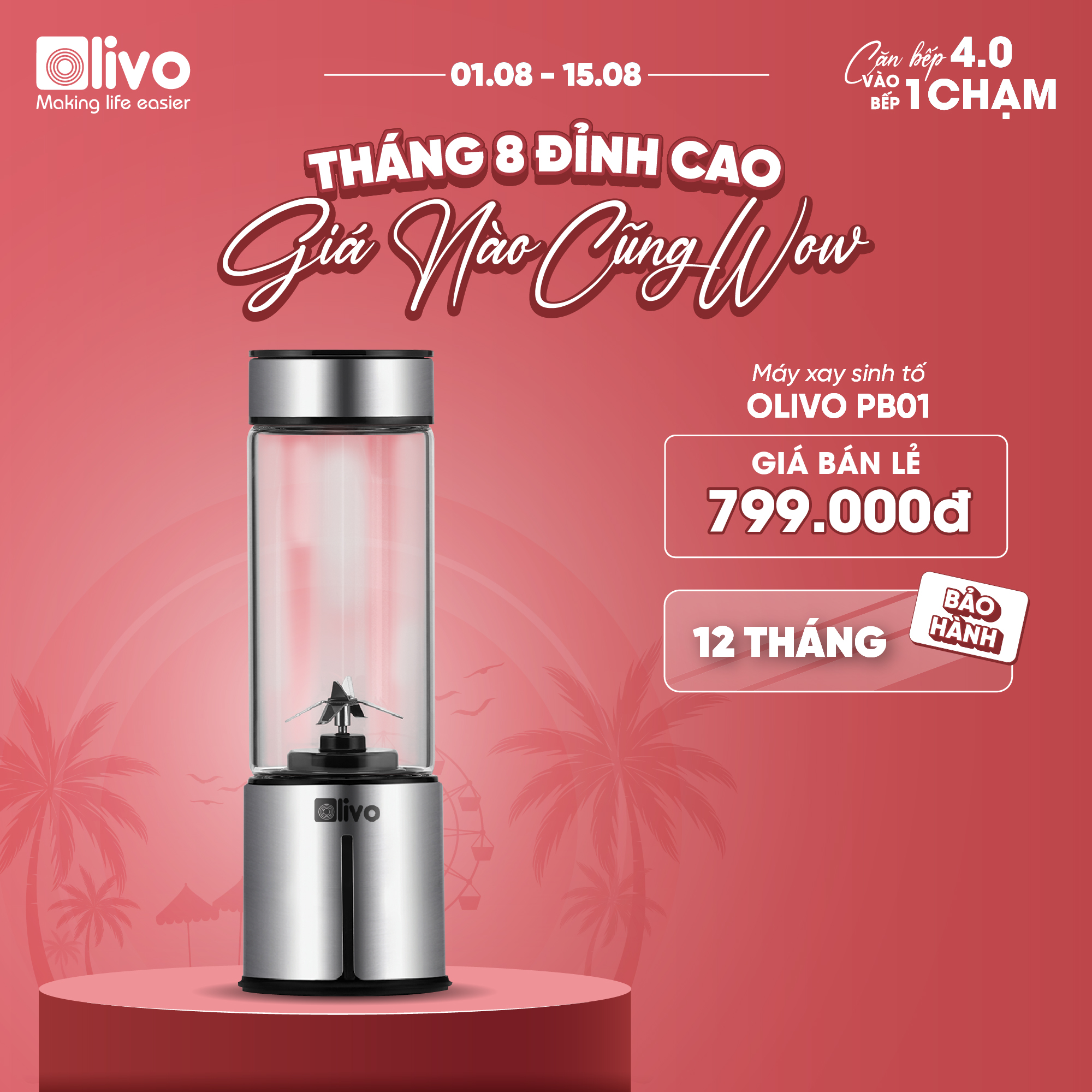 Xay sinh tố, smoothie… là chức năng chính của sản phẩm. Bổ sung rau củ quả tươi mỗi ngày sẽ giúp tăng sức đề kháng cho cơ thể, giữ gìn vóc dáng, đẹp da. OLIVO PB01 có khả năng xay nhuyễn mịn nguyên liệu chỉ trong 30s, thiết kế lại vô cùng nhỏ gọn rất thích hợp để sử dụng hàng ngày.