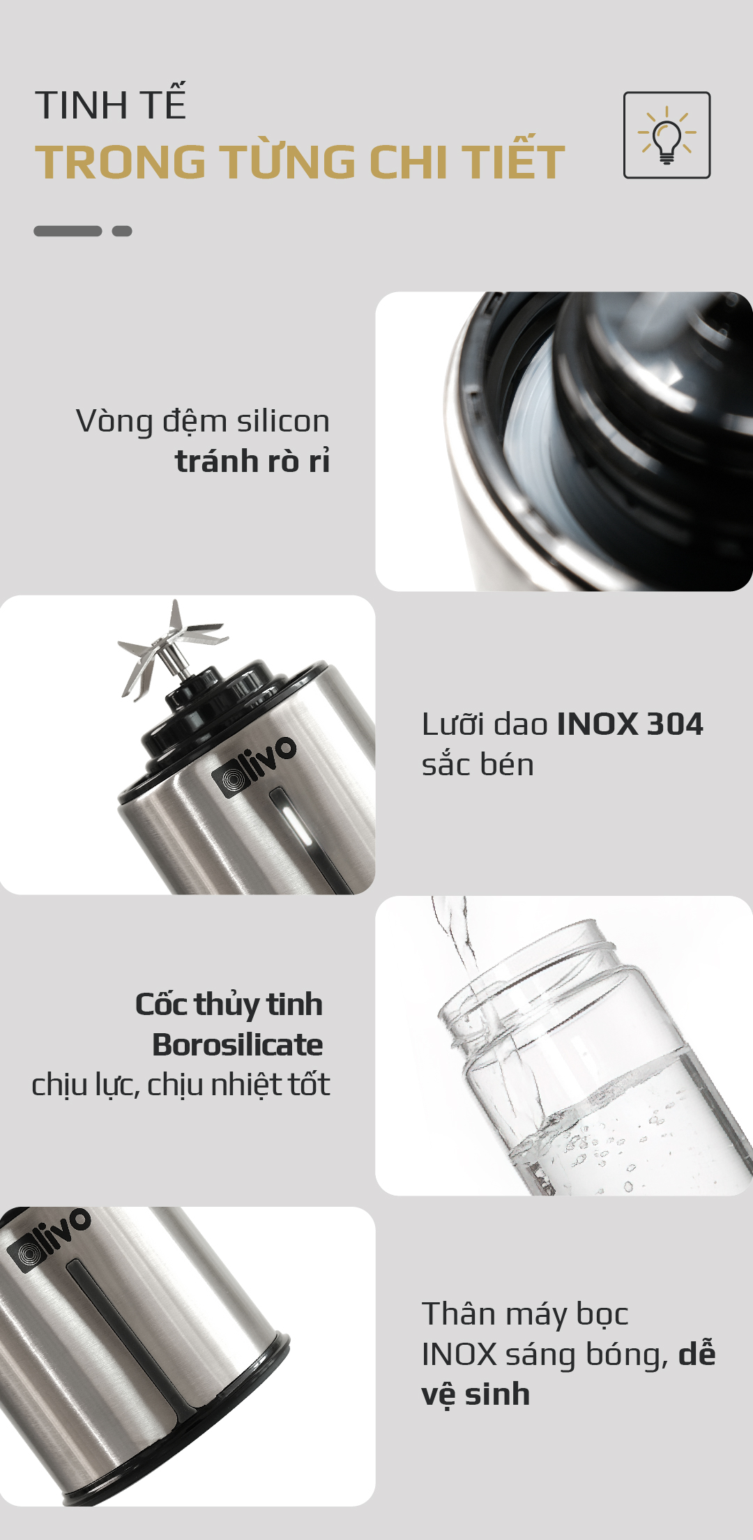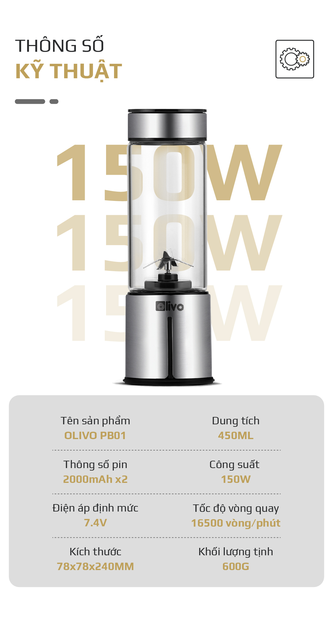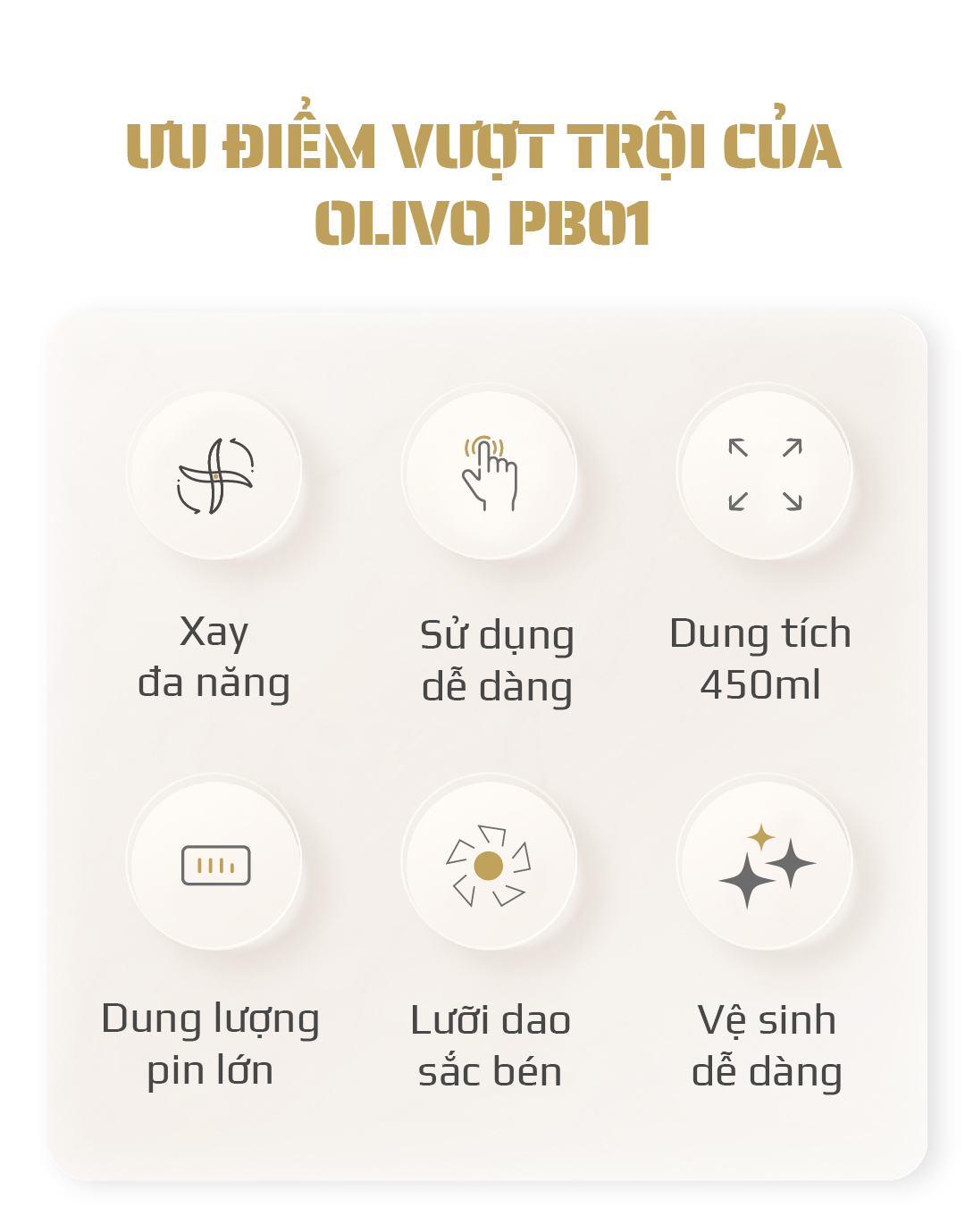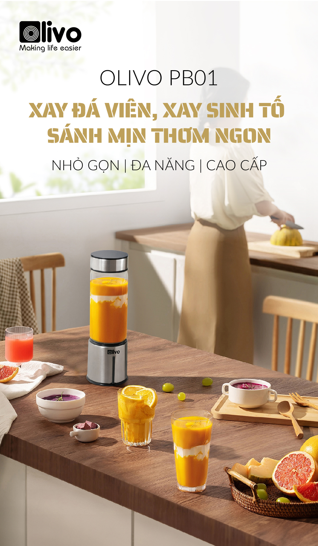 • Dạ, ưu điểm vượt trội của máy xay sinh tố mini OLIVO PB01: