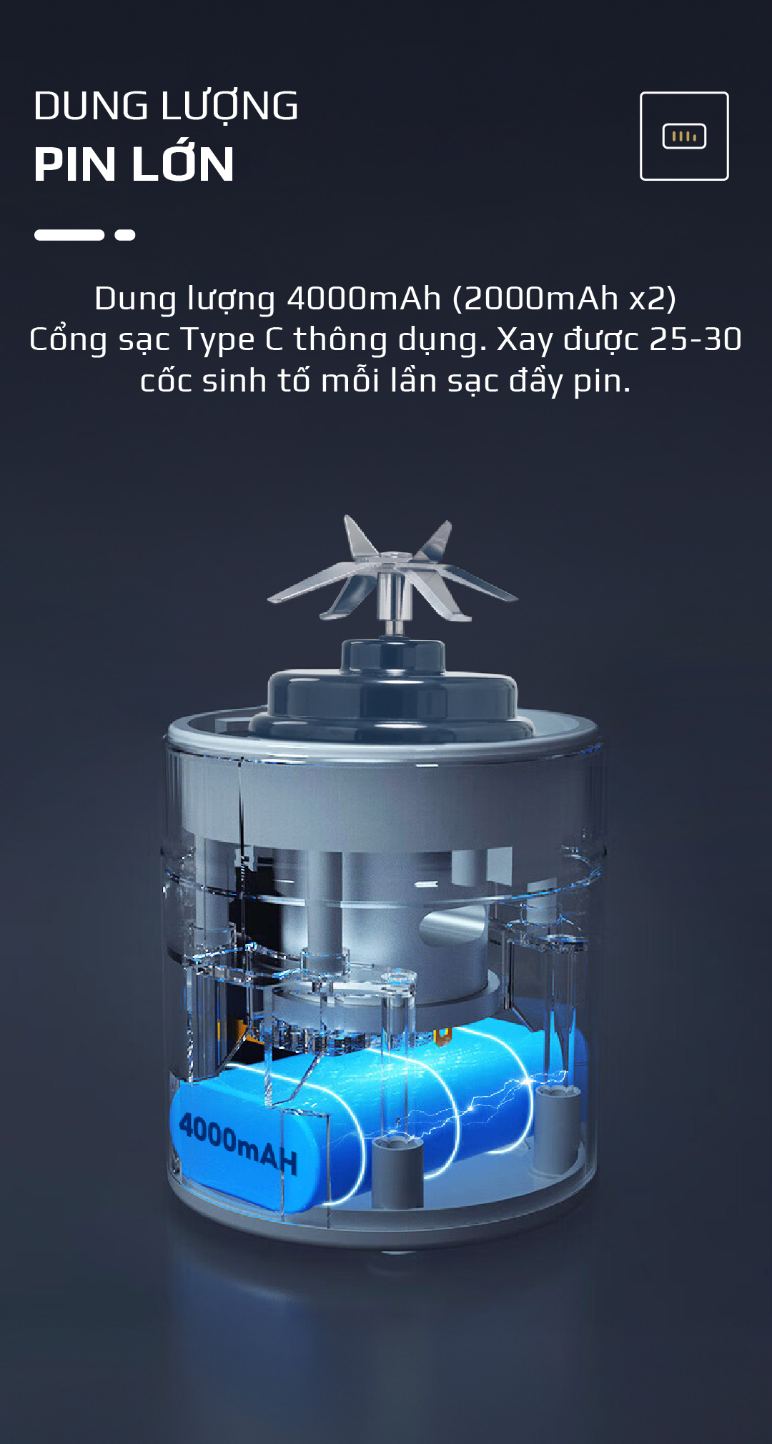 – Mỗi lần sạc pin có thể xay được 30-35 ly sinh tố