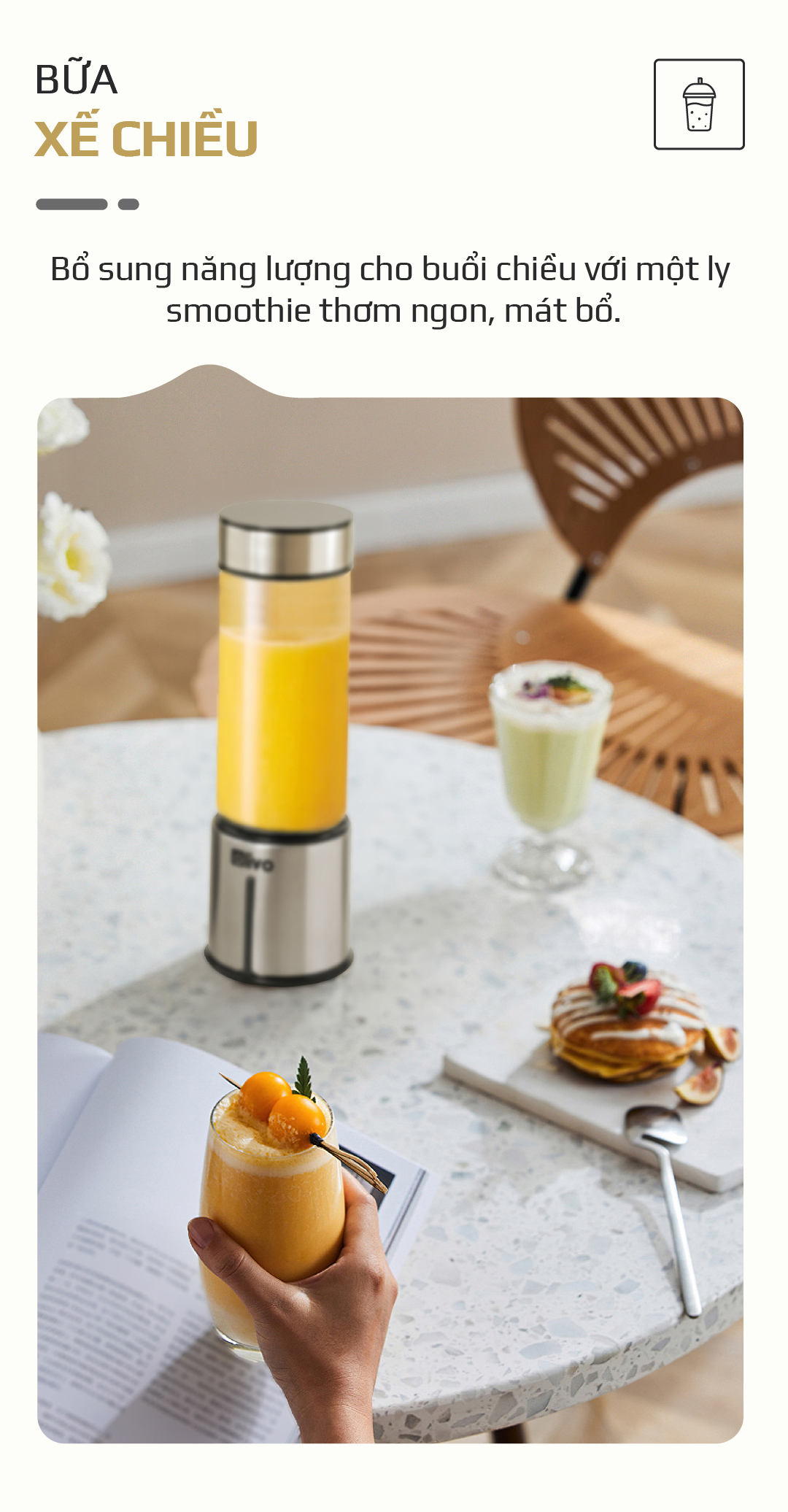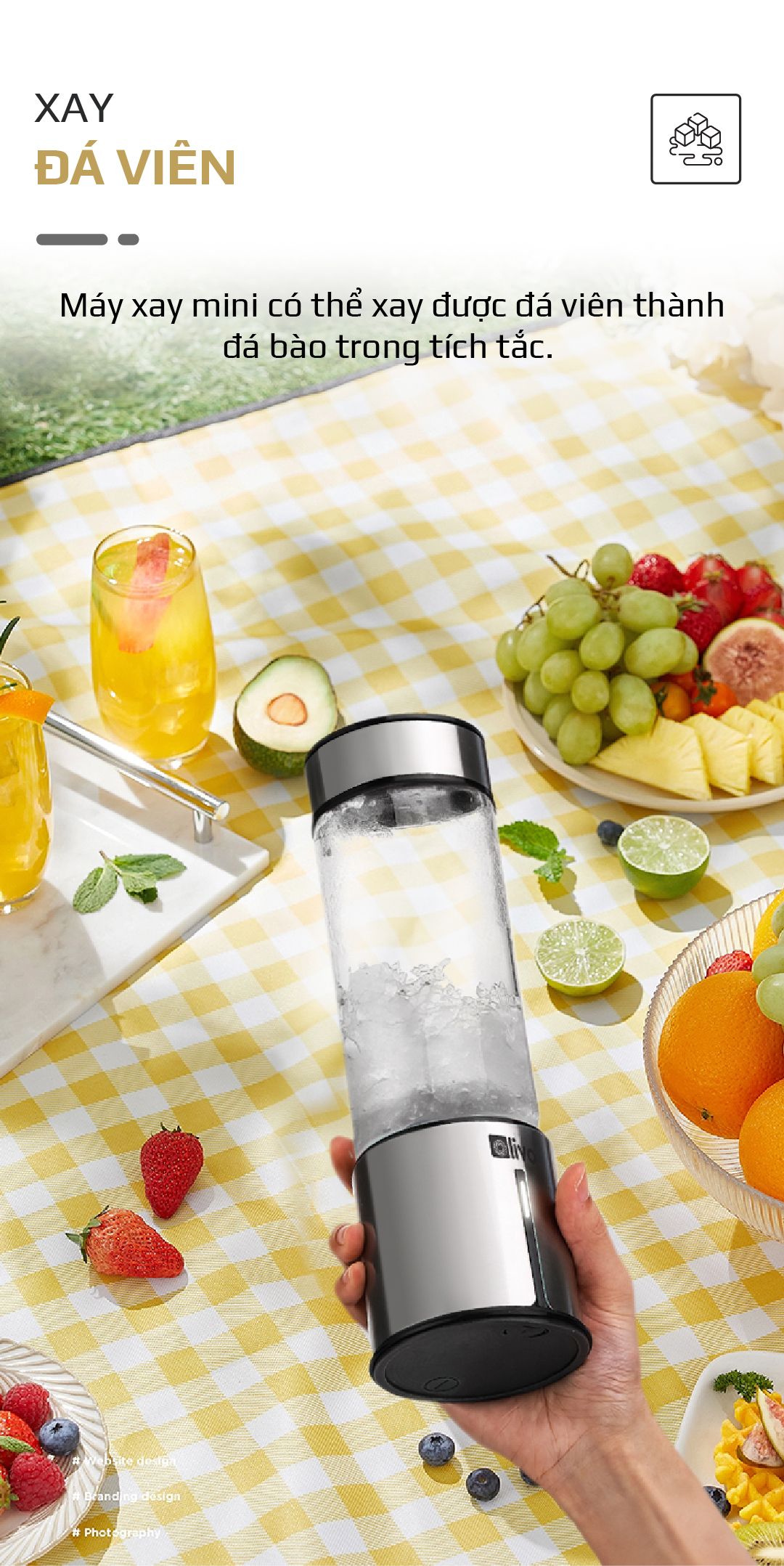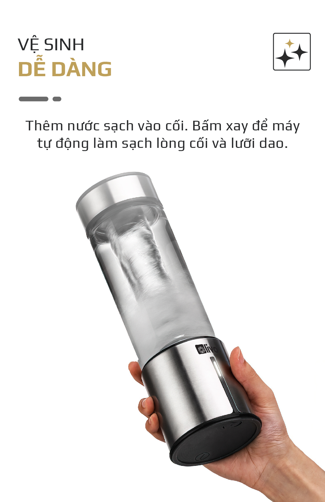 • Điều đáng chú ý là sản phẩm này dùng pin sạc, có thể linh động sử dụng ở mọi nơi mà không cần cắm điện. Dung tích vừa phải, xay được nhuyễn và mịn hoa quả, rau củ chỉ trong 30s. Thao tác sử dụng dễ dàng giúp đem lại trải nghiệm tuyệt vời cho người dùng.