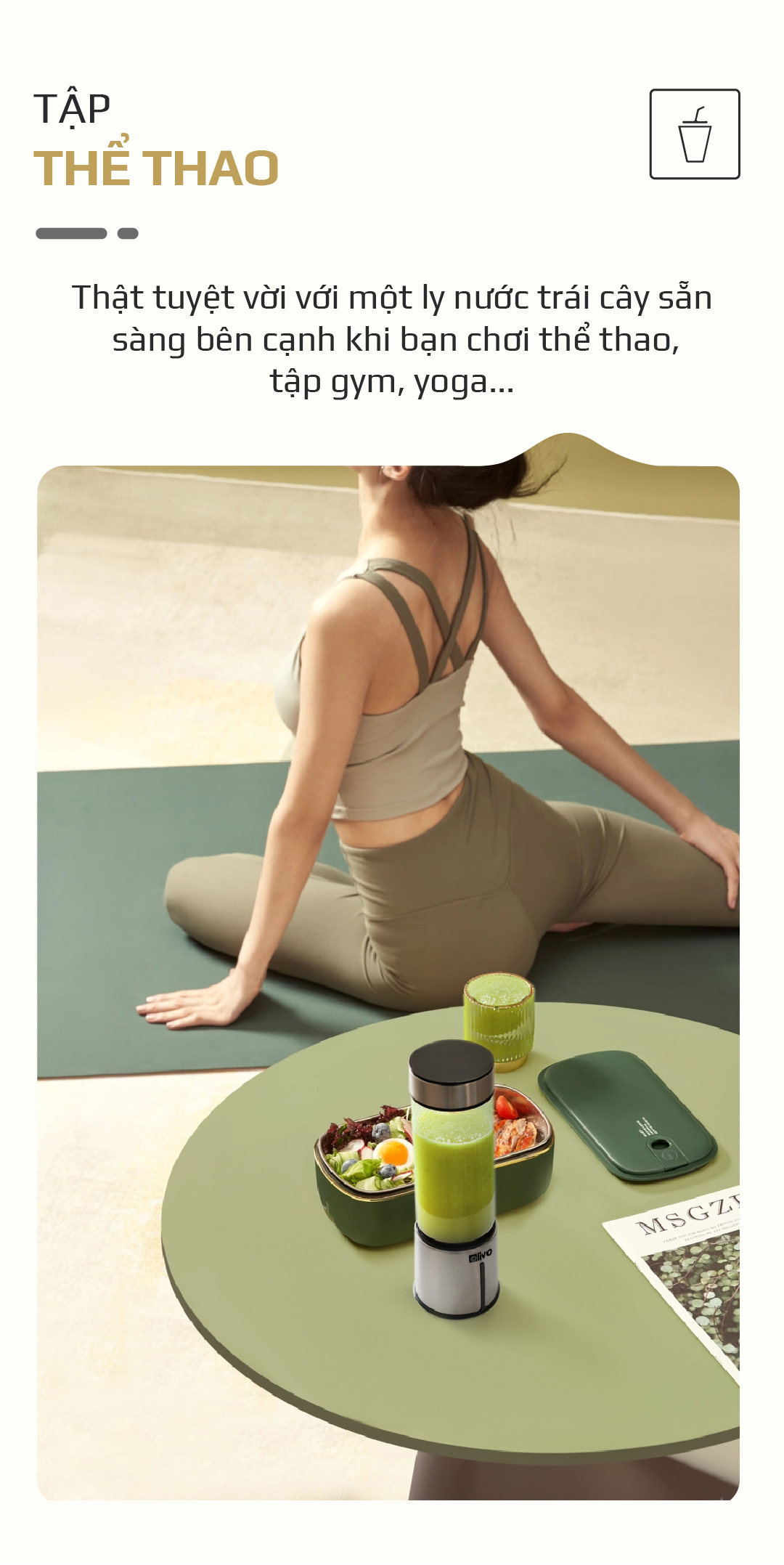 Máy xay này dùng rất tiện, mình mua để mang đi tập gym và thể thao, chỉ cần chuẩn bị nguyên liệu và cho vào rồi đặt máy vào túi xách, khi nào cần dùng thì xay, Máy nhỏ gọn nên dễ dàng để vào túi xách lắm nhé.