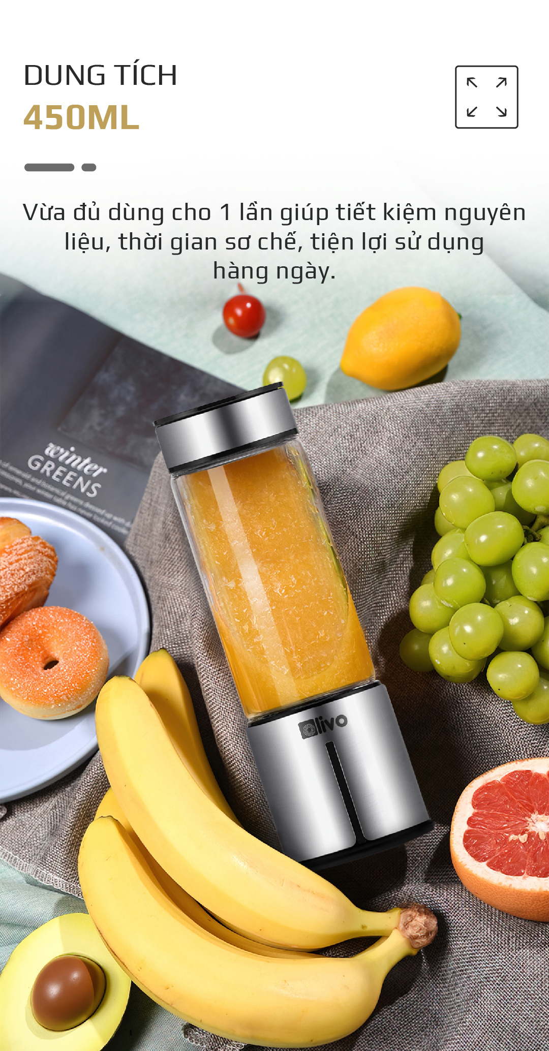 • Với dung tích 450ML đủ cho 1 – 2 người sử dụng trong 1 lần. Giúp bạn tiết kiệm được nguyên liệu, thời gian chuẩn bị. Đảm bảo lúc nào cũng được uống sinh tố tươi ngon nhất.
