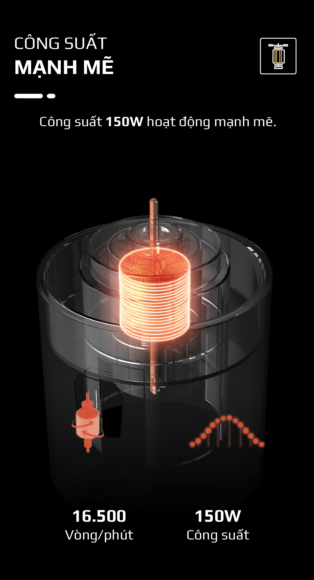 • Với công suất 150W máy hoạt động mạnh mẽ xay nhanh, gọn, nhuyễn mịn mọi loại nguyên liệu. Đặc biệt máy hoạt động rất êm, không ảnh hưởng đến mọi người xung quanh.