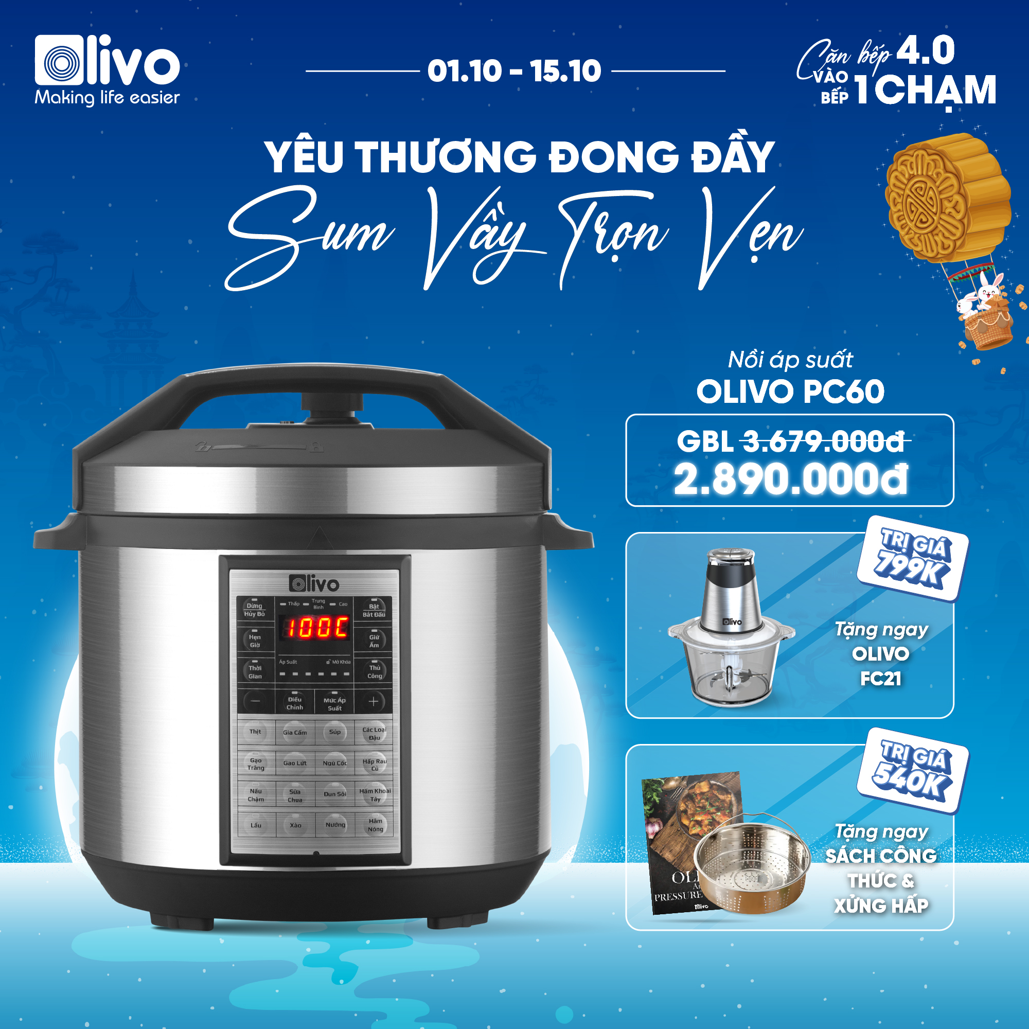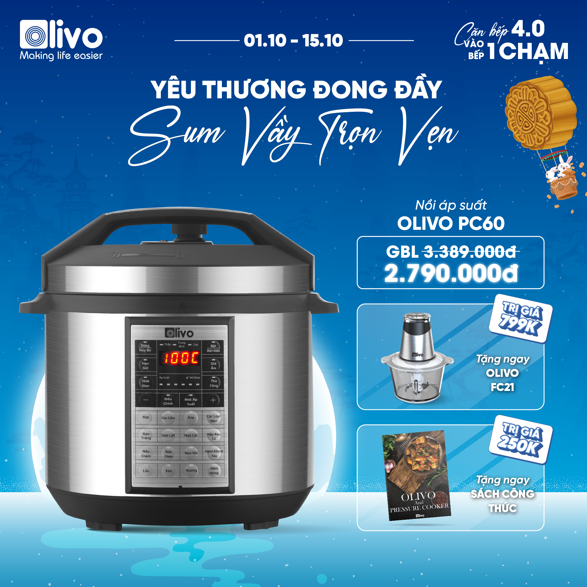 - Với cuộc sống hiện đại thì “thời gian” chính là vàng, mọi công việc như đi làm việc hay tự kinh doanh, đến việc nội trợ hàng ngày cũng chiếm rất nhiều thời gian của Chị em phụ nữ. Trong nhịp sống hối hả bận rộn này thì việc tiết kiệm thời gian nấu nướng nội trợ để có thêm thời gian nghỉ ngơi, giải trí, xả stress sau một ngày làm việc mệt mỏi là một điều cần thiết đối với mỗi Chị Em. Chính vì vậy Olivo Electronics đã nghiên cứu chế tạo và sản xuất sản phẩm nồi áp suất điện OLIVO PC60 dòng nồi áp suất điện tử vô cùng hiện đại, đa năng và an toàn bậc nhất trên thị trường hiện nay.