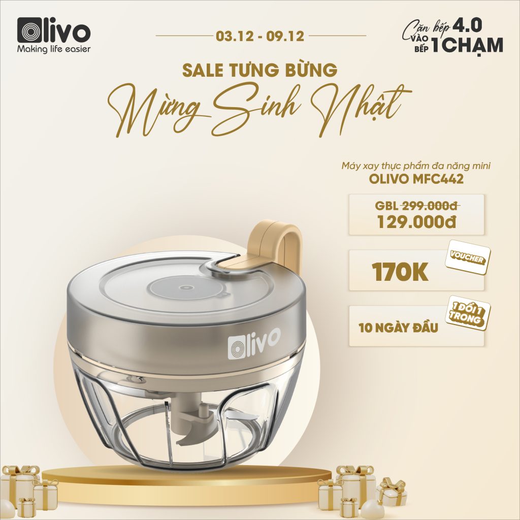 - OLIVO RFC270 không chỉ đem lại sự tiện nghi, nhanh chóng mà còn giúp bạn trải nghiệm nấu nướng thoải mái, đầy sáng tạo. Hãy để máy xay thực phẩm đa năng OLIVO RFC270 là người bạn đồng hành trong gian bếp nhà bạn!