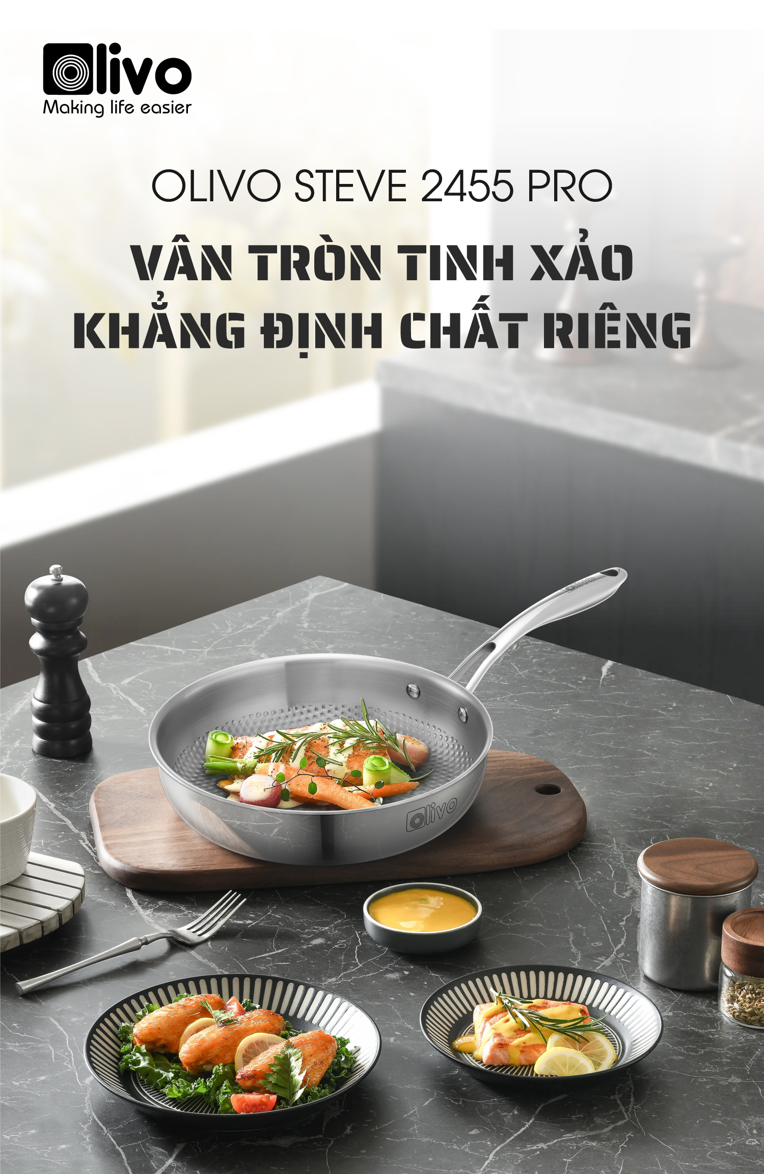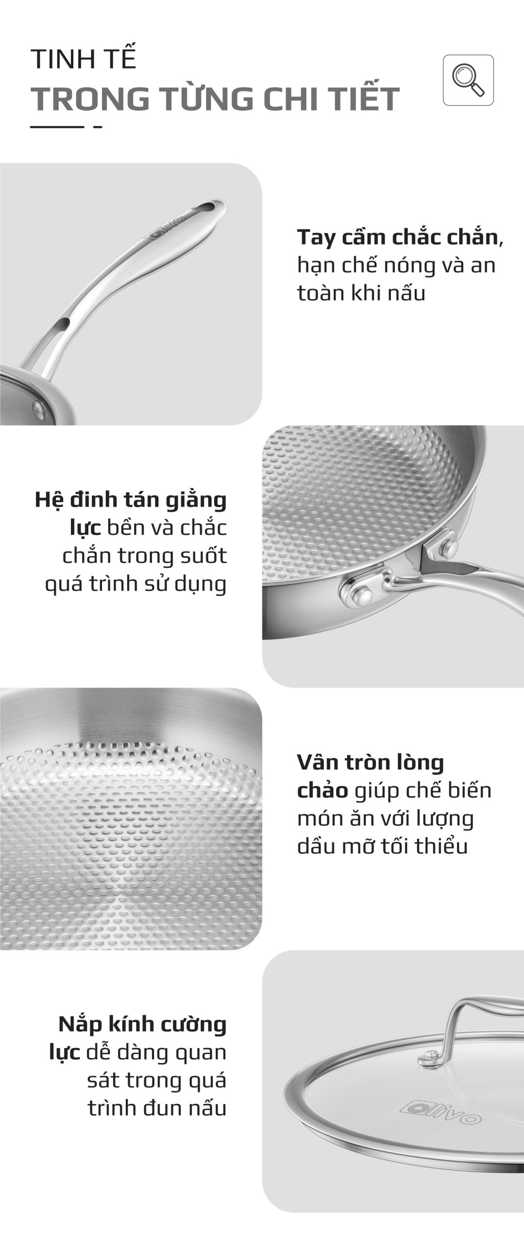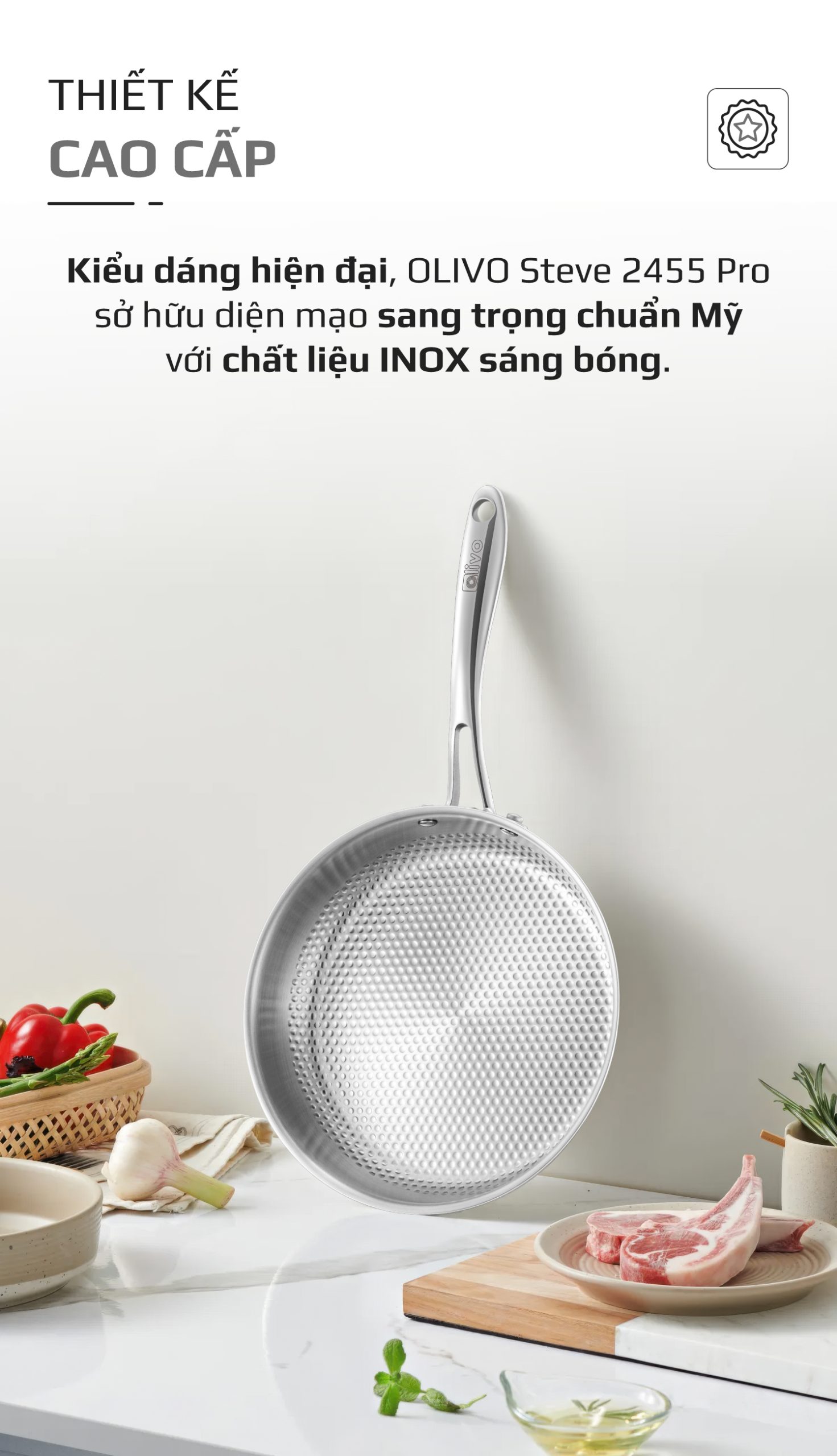 ƯU ĐIỂM VƯỢT TRỘI CỦA SẢN PHẨM CHẢO INOX VÂN TRÒN OLIVO STEVE 2455 PRO