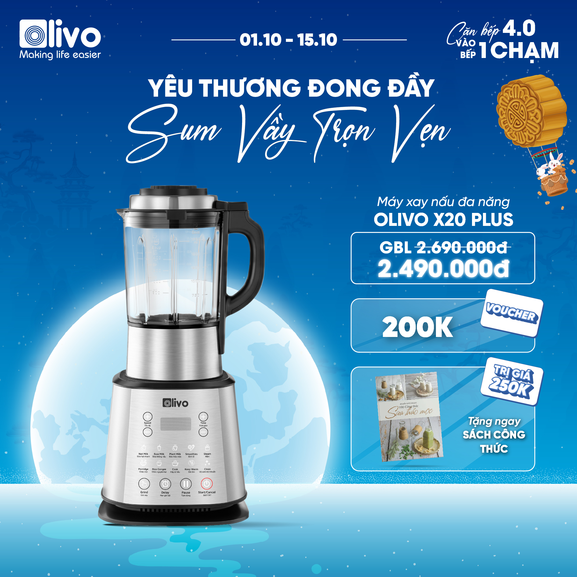 Không còn lo lỉnh kỉnh nhiều dụng cụ, xay nấu, lọc vắt thủ công như xưa nữa. Với máy xay nấu đa năng OLIVO X20 Plus mọi công đoạn đã có máy xử lý. Nấu xong uống liền không cần rây lọc lại.