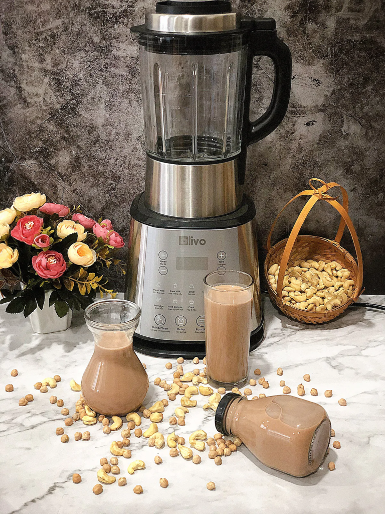Hạt điều cũng đem ngâm trong vòng 2 giờ đồng hồ. Sau đó cho đậu gà, hạt điều cùng 1,2 lít nước vào trong máy xay Olivo X20, chọn chế độ SỮA THẢO MỘC.