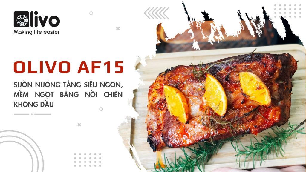 Trong quá trình nướng, có thể dễ dàng quan sát món bởi thiết kế của nồi chiên không dầu OLIVO AF15 là cửa kính, nên dễ dàng quan sát thành phẩm bên trong. Khi thấy sườn đã xém vàng và tỏa ra mùi thơm là có thể mang ra để cả nhà cùng thưởng thức.